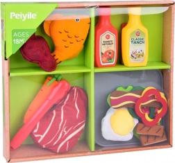 Od steaku a ryby přes vejce a slaninu až po rajče, cibuli, salát, mrkev a papriky – sada podporuje poznávání potravin a vyváženého stravování formou hry.