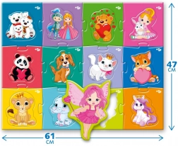 - 12 puzzle dílků + 12 dílků s postavičkami