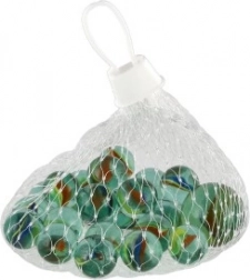 Objevte kouzlo nadčasové hry s kvalitními skleněnými kuličkami v elegantní síťce. Každá kulička má výrazné barevné žilkování, které dodává jedinečný vzhled i při jednoduchém vystavení. Ideální na cvrnkání na dvorku, hřišti i doma jako sběratelský kousek.