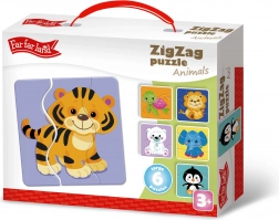 Puzzle ZigZag od Far Far Land nabízí zábavu a vzdělávací hodnotu díky klikatému stříhání a barevným motivům zvířátek. Balení obsahuje 6 obrázků.