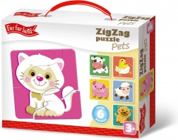Puzzle ZigZag Mazlíčci od Far Far Land je hračka určená pro děti od 3 let, která nabízí zábavu s domácími zvířátky ve 6 různých obrázcích. Barevné designy a speciální klikaté stříhání obohacují zážitek z hraní.