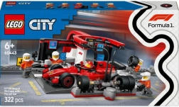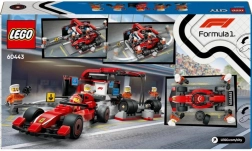 Součástí je červený vůz F1 Ferrari, minifigurka řidiče a čtyři členové posádky pro autentické závodní scénáře a týmovou spolupráci.