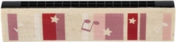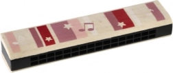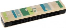 Harmonika je vyrobena z kombinace dřeva a plastu pro příjemný úchop a dlouhou životnost. Je vhodná pro začátečníky – stačí fouknout a střídat nádech s výdechem pro jednoduché melodie.