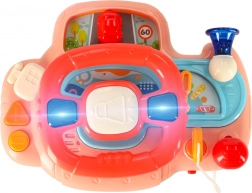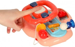 Interaktivní dětský volant je skvělá hračka pro kreativní hraní doma i na cestách. Dítě může otáčet volantem a „řídit“ malé autíčko na palubní desce, přičemž ho doprovází start motoru, klakson, směrovky se světlem a veselé melodie. Díky možnosti nastavení hlasitosti se hra snadno přizpůsobí prostředí.