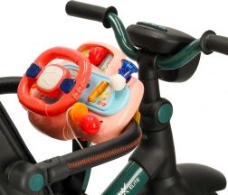 Hračka je navržena s důrazem na rozvoj: podporuje jemnou motoriku, koordinaci oko–ruka a smyslové vnímání. Praktický upevňovací pásek umožní rychle přichytit volant na kočárek či postýlku, takže zábava může pokračovat kdekoliv.