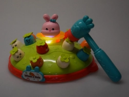 Králíček, který při správném zásahu kladívkem vyskakuje, a veselá melodie, která provází celou hru, dělají zábavu ještě přitažlivější.