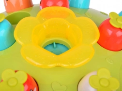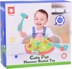 Zábava je nejen vizuální a sluchová, ale také motorická. Dítě může sledovat, jak jeho údery kladívkem ovlivňují chování jednotlivých postaviček. K dispozici je bezpečné kladívko s měkkým zakončením. Po skončení hry lze kladívko uložit do určeného otvoru vedle mrkviček.