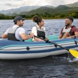 Balení obsahuje vše potřebné pro vaše vodní dobrodružství: člun, dvojici vesel, pumpu a opravnou sadu. Vše je snadno sestavitelné a přenosné.