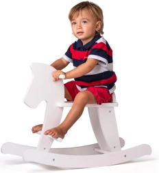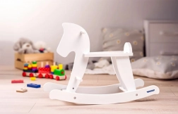 Objevte nadčasovou klasiku do dětského pokojíčku: bílý dřevěný houpací koník, který spojuje radost z pohybu a podporu přirozeného vývoje. Houpavý pohyb napomáhá rozvíjet rovnováhu, koordinaci i hrubou motoriku, zatímco nízká výška sedáku (cca 28 cm) dodává dětem jistotu při prvních jízdách.