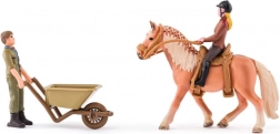 Figurka jezdce na koni, farmář s kolečkem a praktické nástroje přinášejí do hry více scénářů a podporují rozvoj fantazie i jemné motoriky.