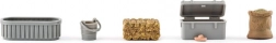 - Příslušenství ke krmení (koryto, vědro, balík sena, pytel) pro péči o zvířata
