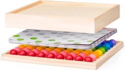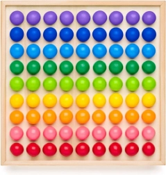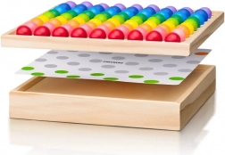 - Kvalitní materiál: pevná dřevěná deska a odolné kuličky v barvách duhy.