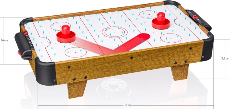 Užijte si dynamickou stolní hru, která prověří postřeh, hbitost a reflexy. Díky perforované hrací ploše a vzduchu vháněnému vestavěným ventilátorem klouže puk bleskově rychle bez zbytečného tření. Dřevěný vzhled boků a kompaktní rozměry z ní dělají stylový doplněk každého domova.