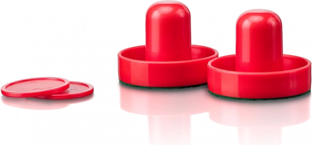 Hra je připravena k okamžitému použití: nasadíte 3× AA baterie, rozložíte na stůl a můžete hrát. Plstěné pálky šetří povrch a zajišťují hladké vedení puku, manuální počítadla skóre na obou stranách udrží přehled o výsledku a zvýšené rohy s plastovými chrániči dodají stabilitu.