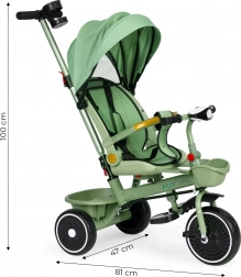 Tato chytrá tříkolka roste s vaším dítětem – od režimu kočárku pro nejmenší po samostatnou jízdu pro starší děti. Rodičovská vodicí tyč přímo ovládá řídítka, takže máte směr plně pod kontrolou. Otočné sedadlo 360° umožní jízdu čelem k rodiči nebo po směru, zatímco polohovatelná opěrka a skládací podnožky zajistí komfort na každé vycházce.