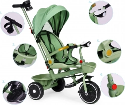 Multifunkční dětská tříkolka ECOTOYS spojuje kočárek a kolo v jednom. Nabízí otočné sedadlo o 360°, odnímatelnou stříšku, bezpečnostní pásy a rodičovské řízení. Díky odolným EVA kolům, ocelovému rámu a bohaté výbavě (světlo se zvuky, košíky, držák nápojů) zajišťuje pohodlné a bezpečné projížďky pro děti od 6 měsíců do 6 let.