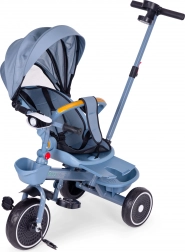 Tato multifunkční tříkolka kombinuje pohodlí kočárku a zábavu klasické tříkolky. Otočné sedadlo umožní vozit menší děti čelem k rodiči, starší si užijí jízdu ve směru jízdy. Stabilní ocelová konstrukce, polohovatelná opěrka a nastavitelná řídítka zajišťují ergonomii a bezpečí v každé fázi vývoje.