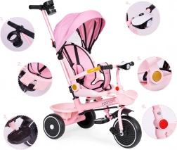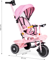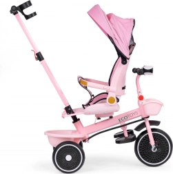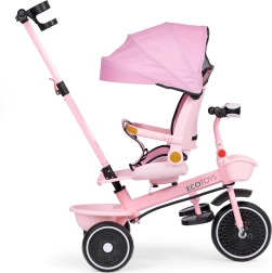 Univerzální dětská tříkolka 2v1 od ECOTOYS roste s vaším dítětem od 6 měsíců do 6 let. Nabízí otočné sedadlo 360°, skládací stříšku, ocelový rám, bezúdržbová EVA kola a rodičovské ovládání. Pro maximální pohodlí a bezpečí nechybí pětibodový pás, ochranné madlo, sklopné opěrky nohou, košíky na drobnosti a světlo se zvuky.