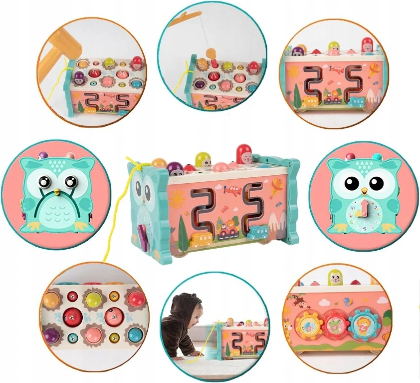 Objevte svět her a učení s touto fascinující motorickou kostkou 8v1 v tématice roztomilé sovy. Děti si procvičí jemnou motoriku a rozvinou svou trpělivost a soustředění.