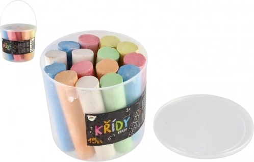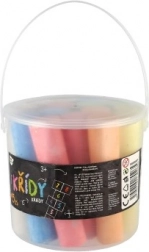 Barevné chodníkové křídy v praktickém kyblíku jsou skvělou zábavou pro děti. Sada 15 kříd umožňuje kreativitě a fantazii rozkvést, ať už na tabuli, dřevě nebo asfaltu.