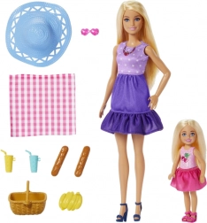 Sada Barbie Rodina a přátelé přivádí děti do světa Barbie, kde mohou slavit rodinné pouta, přátelství a pečující hru! Tento set přemění obyčejnou hru na neopakovatelný piknik s Barbie Malibu, její malou sestrou Chelsea a 9 tematickými doplňky.