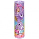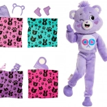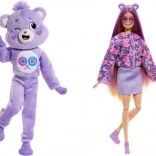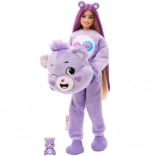 Panenka je ukrytá v heboučkém, plyšovém kostýmu fialového medvídka Něžné srdce – symbolu empatie a péče. Po sejmutí kostýmu se odhalí krásná panenka s dlouhými vlasy připravená na styling. Části kostýmu snadno proměníte na stylovou bundu, zatímco medvědí hlava se změní v roztomilý pelíšek pro mini figurku CARE BEARS.