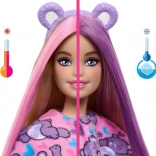 Plyšový fialový kostým nejen hezky vypadá, ale lze ho přeměnit na stylovou bundu pro panenku. Velká medvědí hlava se navíc mění na pelíšek pro mini medvídka.