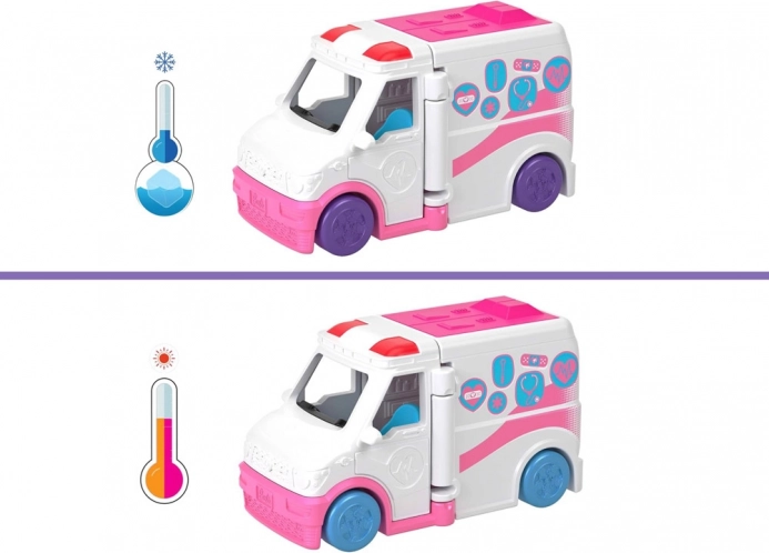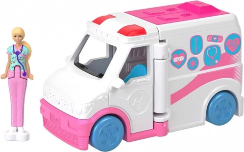 Tato mini sanitka inspirovaná světem BARBIE přináší velkou porci zábavy v malém balení. Vozidlo se po otevření promění v malou kliniku, kde může minipanenkou pečovat o pacienty, sedět na otočném sedadle a vyprávět vlastní záchranářské příběhy. Díky kompaktním rozměrům je set ideální na doma i na cesty.
