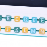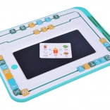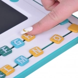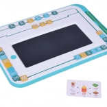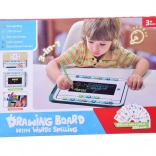 Hlavním prvkem sady je tablet s LCD tabulkou a stylusem, který umožňuje dětem jednoduché psaní a kreslení. Kolem obrazovky se nachází pohyblivé barevné písmenka, které lze přesouvat a skládat do slov. Tablet je vybaven kulatým tlačítkem 'koš', které smaže obsah na tabulce, a černým posuvníkem pro zabránění nechtěného smazání.