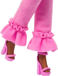 Tato panenka BARBIE Deluxe Style posouvá módní zábavu na novou úroveň. Je oblečená od hlavy až k patě do růžové – nadýchaný chlupatý crop top, kalhoty s výraznými volány a růžové sandálky na podpatku tvoří dokonale sladěný look. Díky kloubům ji snadno nastavíte do dynamických póz, ideálních pro fotografie i vitrínu.