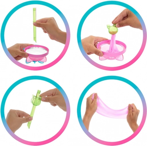 Balení ve tvaru milkshaku ukrývá až 8 překvapení včetně třpytivého, pružného slizu pro smyslovou zábavu a skladování doplňků.