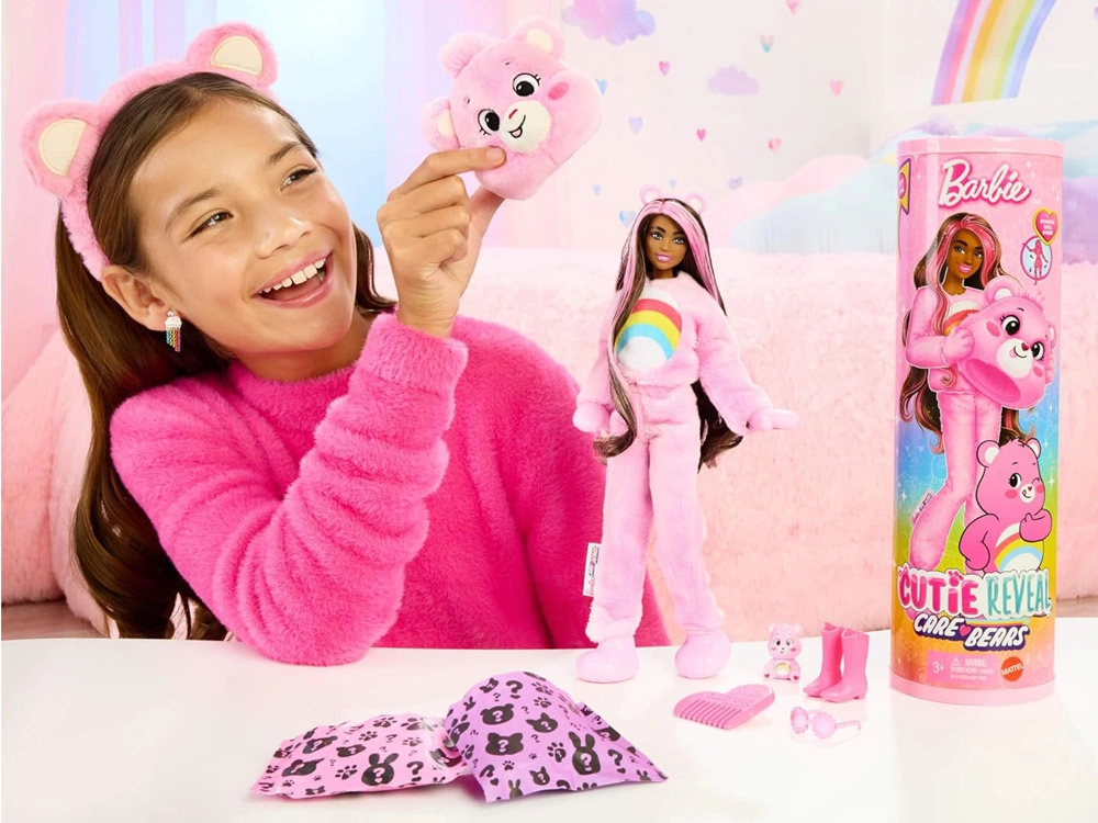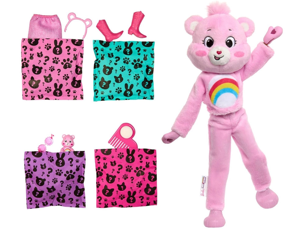 Panenka Barbie Cutie Reveal v edici TROS̆KOMIŠI přináší dvojitou dávku zábavy: nejprve odhalíte panenku ukrytou v měkkém plyšovém kostýmu růžového medvídka, poté ji můžete převlékat do módních outfitů a vytvářet vlastní styly. Díky pohyblivým kolenům, loktům a zápěstím panenka snadno zapózuje pro fotky i kreativní příběhy.