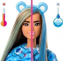 Po sejmutí roztomilého modrého medvěda se odhalí stylová panenka Barbie s pohyblivými klouby. Horní část kostýmu lze obrátit a proměnit v měkoučkou módní bundičku, medvědí hlava se změní na pelíšek pro mini medvídka. V balení najdete doplňky pro oblékání a česání, které zaručí hodiny zábavy.