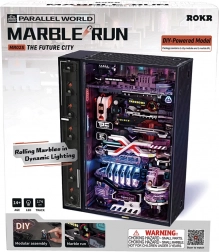 Vytvořte si doma pulzující sci‑fi panoráma s rychlými sjezdy mezi výškovými budovami, potrubím a továrnami. Automatický výtah posílá kuličky zpět na start a neónové LED osvětlení dodává celé scéně kyberpunkovou atmosféru. Jediným tlačítkem přepnete mezi „rušným dnem“ a „barevnou nocí“.