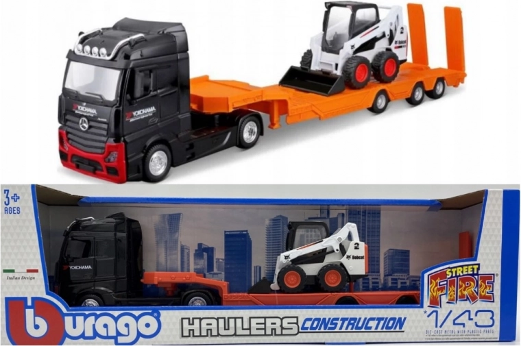 Tento detailně zpracovaný model kamionu přináší atraktivní spojení tahače MB Actros Gigaspace a stavebního nakladače Bobcat. Díky kovové konstrukci a pečlivým potiskům působí věrně a je ideální pro dětské hry, sbírky i dekoraci regálu.