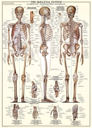 - Vzdělávací motiv: kosterní soustava s popisy hlavních kostí a struktur.