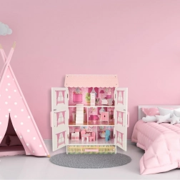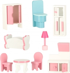Kvalitní provedení z MDF desek zajišťuje stabilitu a odolnost. Devět pastelových mini-mebelečků můžete libovolně přesouvat a vytvářet nové příběhy s panenkami, plyšáky i figurkami.