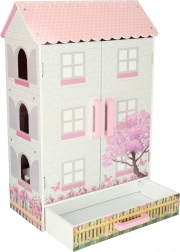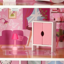 Růžová rezidence Lulilo Papilio promění dětský pokoj v místo nekonečné fantazie. Otevírací dvířka s magnetickým zavíráním usnadní uklízení i vystavování, zatímco spodní zásuvka pojme nábytek a drobné doplňky. Domeček má 3 patra s kuchyní, koupelnou, ložnicí, obývákem a schodištěm.