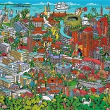 Limitovaná edice puzzle TREFL Premium Plus Share the Moments: Trojměsto přináší uměleckou ilustraci, která propojuje architekturu Trojměstí s typickými symboly značky TREFL. Při skládání objevíte hravé detaily, jako jsou střešní tašky ve tvaru puzzle či basketbalisté zasazení do městských scenérií.