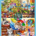 Objevte zábavu pro celou rodinu s puzzle sadou 2×500 dílků. V balení najdete dvě samostatné skládanky zobrazující malířský ateliér ve dvou odlišných pojetích. Každý obrázek má rozměr 480 × 340 mm a nabízí příjemnou míru výzvy, kvalitní zpracování dílků a skvělou relaxaci při skládání.