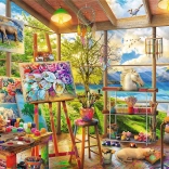 Užijte si dvojnásobnou radost ze skládání – sada obsahuje dvě puzzle po 500 dílcích, které zobrazují kreativní svět malířské dílny v různých atmosférách. Ideální pro pohodové večery, rozvoj trpělivosti a procvičení soustředění.