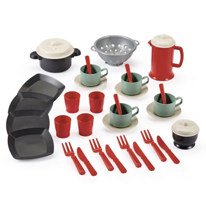 Tato sada je ideální pro malé hostitele a hostitelky, kteří rádi pořádají čajové dýchánky nebo obědy pro své kamarády a panenky. Jednoduše přenosná díky průhledné tašce se zipovým uzávěrem, která obsahuje vše potřebné pro stolování.