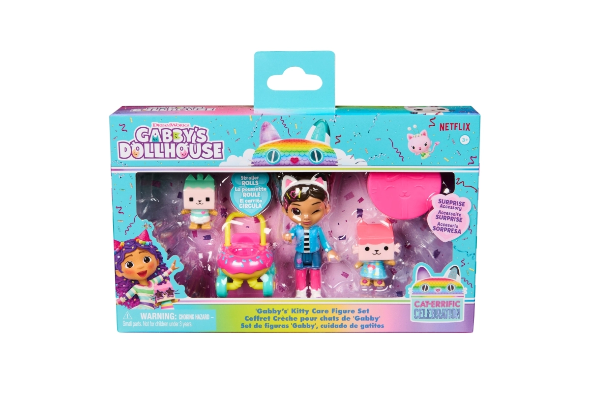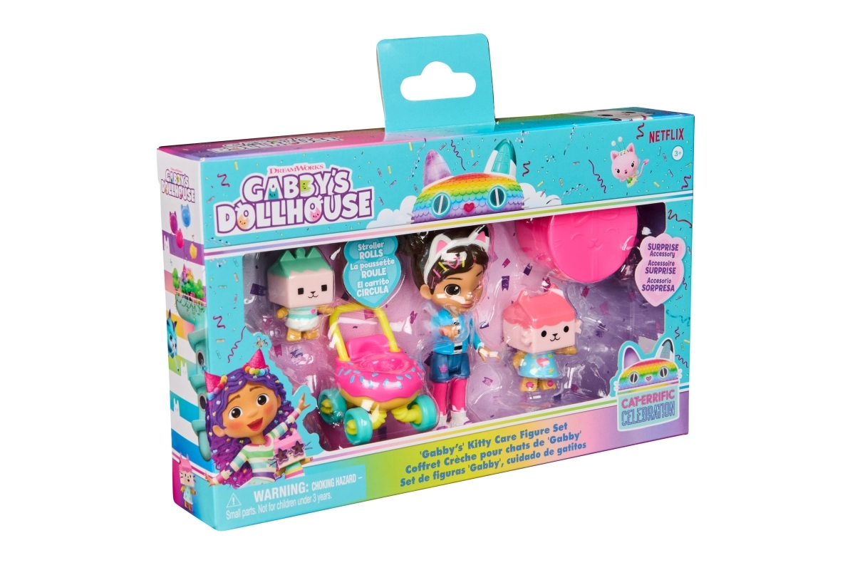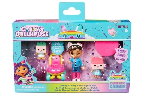 Sada figurek Kitty Care ze světa Gabby’s Dollhouse potěší každé dítě, které miluje hravé příběhy a roztomilé kočičky. Figurka Gabby i kočičí parťáci mají věrné detaily a jsou pohyblivé, takže snadno zapadnou do každého dobrodružství v domku pro panenky i mimo něj. Součástí je i tematický kočárek ve tvaru donutu, který lze skutečně rolovat.