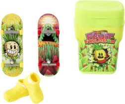 Krabička ve stylu balení žvýkaček se snadno vejde do kapsy a bezpečně uschová vaše fingerboardy i boty pro přesnější ovládání. Každé balení zdobí originální grafika a obsahuje 2 exkluzivní prkna plus pár odnímatelných skate bot ladících barvami i motivy – ideální pro hraní, trénink triků i sbírání.
