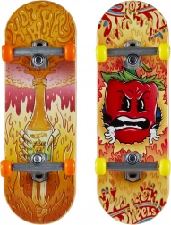 Vezměte si své mini prkno všude s sebou – přenosná krabička HOT WHEELS ukrývá 2 plně sestavené fingerboardy a pár odnímatelných skate bot s ladící grafikou. Stylové provedení připomínající balení žvýkaček a různé motivy (Bubble Blast, Snakeberry Sour) dělají z této sady perfektní volbu na cesty i domácí triky. Pro děti od 3 let (doporučeno 5+).