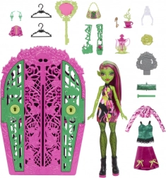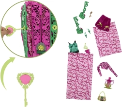 Otevřete dveře skříně, posbírejte tři části talismanu a posuňte ho vzhůru, aby „vystoupila“ panenka MONSTER HIGH. Více než 19 překvapení přináší radost z rozbalování i další herní scénáře.