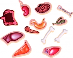 Barevné dílky ve tvaru orgánů a kostí učí děti základům anatomie a podporují zvídavost.
