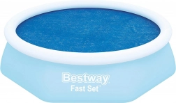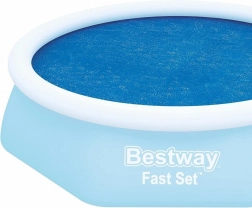 Solární krycí plachta je jednoduché a účinné řešení, jak udržet čistotu vody v nadzemních bazénech BESTWAY Fast Set o průměru 244 cm. Plave přímo na hladině, čímž brání vnikání listí, hmyzu a dalších nečistot, a zároveň působí jako tepelná izolace – voda zůstává déle příjemně teplá.