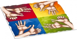 Barevný herní plán se čtyřmi kvadranty v různých barvách nabízí interaktivní zábavu plnou gest.