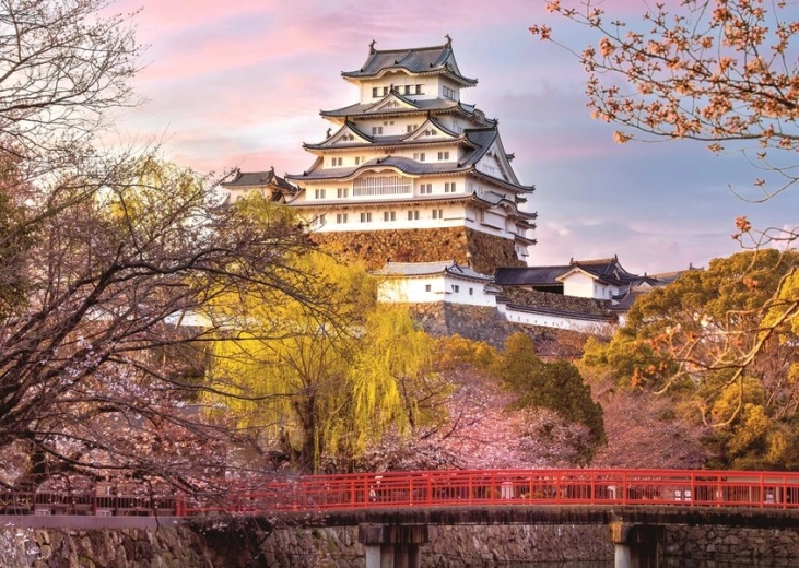 Objevte kouzlo japonské architektury s puzzle Ravensburger zobrazujícím ikonický hrad Himedži. Tento obraz plný detailů, jemných barevných přechodů a romantické atmosféry západu slunce je ideální pro klidné večery i soustředěnou zábavu. Rozměr složeného puzzle je cca 70 × 50 cm, takže se skvěle hodí k zarámování a vystavení.